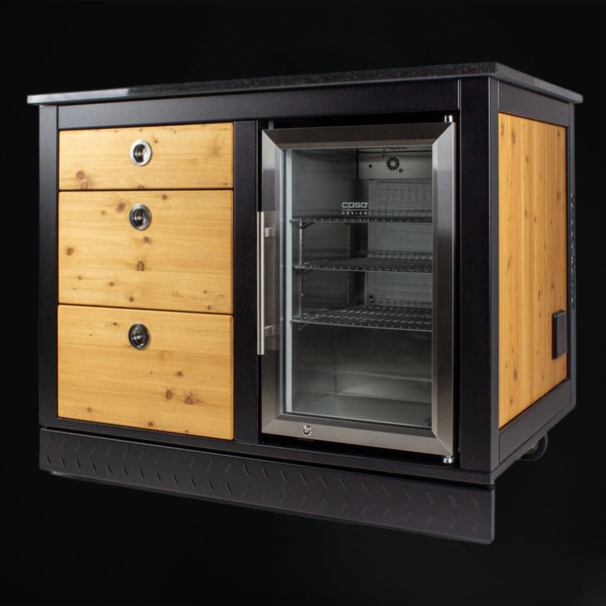 Ein sauberer Abschluss für deine Outdoorküche entsteht durch unsere hochwertigen Frontblenden: Dein Merklinger und unsere Outdoor Module bleiben mobil, mit unseren Frontblenden wirken diese geschlossen und stationär und erstellen ein tolles Erscheinungsbild in deinem Garten. Diese Frontblende wurde speziell für unsere Outdoor Module mit integriertem Kühlschrank gefertigt (Outdoor Module Maria und Maxi).