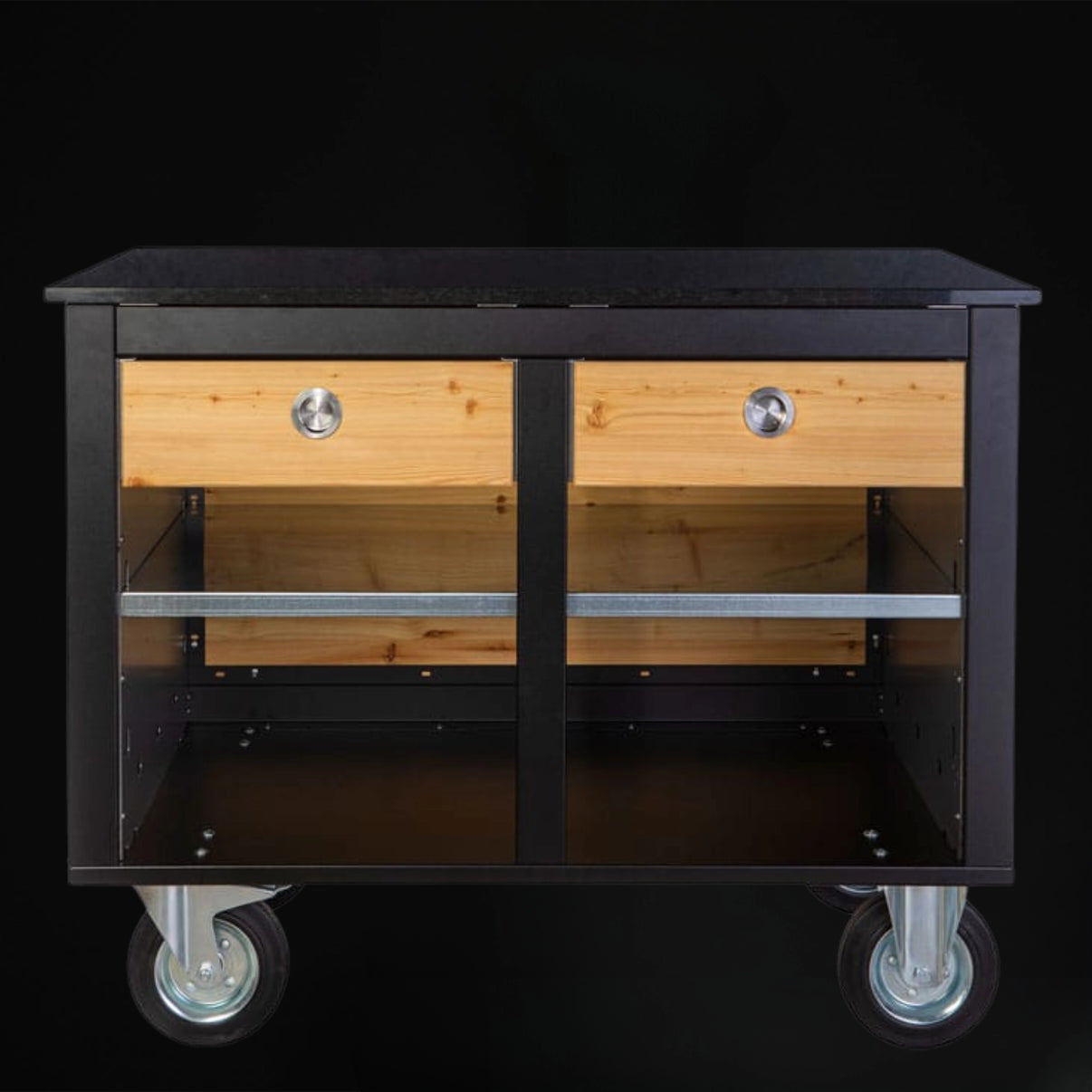 Für deine Merklinger Outdoorküchen-WeltDas Merklinger Outdoor Modul mit Granitoberfläche als dein praktischer Begleiter zum Merklinger Holzbackofen und Grill. In zwei tiefen Schubladen (65 cm) und auf einer Ablagefläche hast du enorm viel Stauraum für dein Zubehör, Holz und mehr. Robust, hochwertig und praktisch, wie du es von uns gewohnt bist. Deko und Zubehörartikel (wie z.B. die Frontblende) gehören nicht zum Lieferumfang.