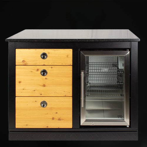 Die Merklinger Outdoorküche „Stauraumwunder“. Den maximalen Stauraum holst du dir mit diesem Outdoorküche Set. Der Merklinger 800, drei Outdoor Module mit Granitoberfläche, integriertem Edelstahl Spülbecken, Kühlschrank und viel Stauraum in drei Schubladen, bieten dir eine komplette Outdoorküche Made in Bavaria. Das Kühlen deiner Getränke, Teige und Speisen direkt neben deinem Merklinger, sowie Gemüse waschen oder einfach nur abspülen war noch nie so einfach.