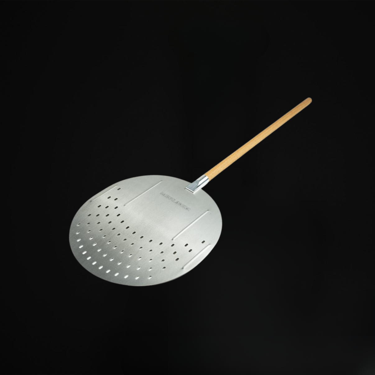 Unsere neue Pizzaschaufel macht dich zum absoluten Profi. Die 35 x 37 cm große Auflagefläche mit Perforierung erleichtert das Arbeiten und lässt überschüssiges Mehl, Grieß oder Semola von der Pizza herabrieseln. Die Perforierung sorgt außerdem für eine geringere Reibung, sodass die Pizza perfekt von der Schaufel gleitet. Diese einzigartige Pizzaschaufel besitzt im vorderen Bereich die notwendige Elastizität/Biegsamkeit zur leichten Aufnahme der Pizza und im hinteren Bereich eine Stabilisierung, so dass sie sich auch bei der Aufnahme von schwereren Köstlichkeiten aus deinem Merklinger nicht verbiegt. Robust und rostfrei, leicht zu reinigen.